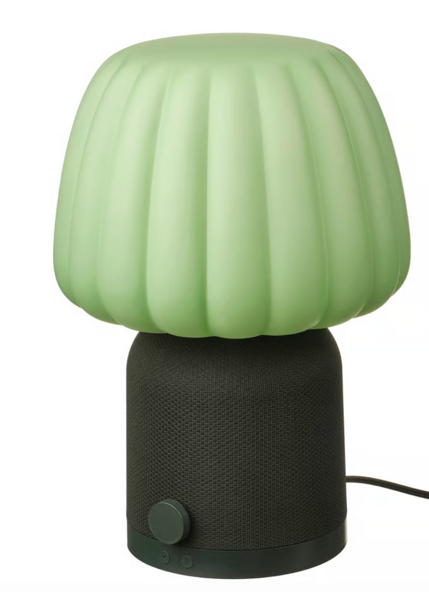 A lamp that plays music, designed by Swedish designer Teklan for IKEA. I repeat: a lamp that plays music. Ideal for people who hate visual clutter but refuse to live in silence.
