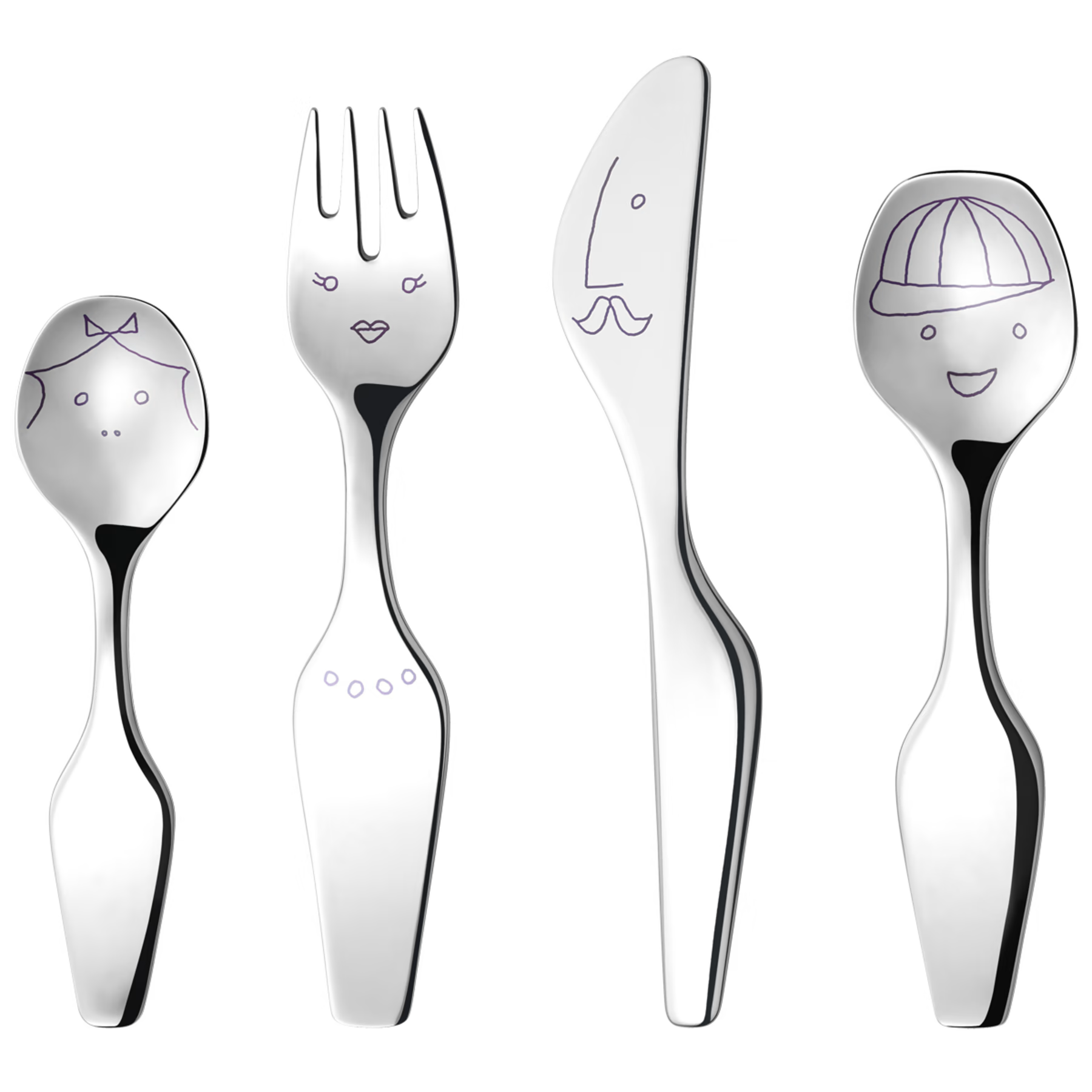 At some point, every toddler develops a dining-room personality, and the soft-touch silicone spoons of early parenthood start to feel… provisional. Enter this Georg Jensen set: playful without being precious, sculptural without tipping into novelty. The small illustrated faces feel like an inside wink at the table.